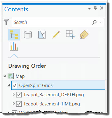 The progress window will go away when each grid has been imported. The grid layers created by receiving the event are placed in active map's contents tree under a new group named OpenSpirit Grids.