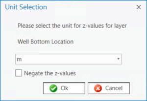 A unit selection window will appear for each layer that contains selected three dimensional features (features with a Z axis value).
