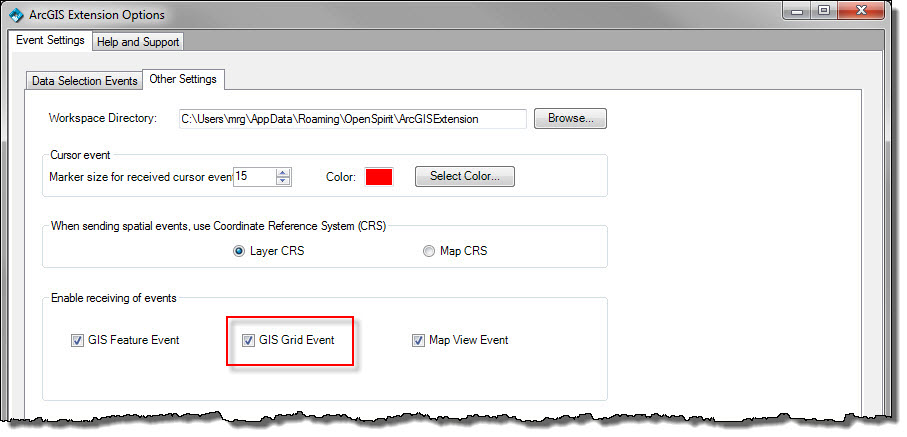 ArcGIS is enabled for listening to grid events as long as the lightning bolt is enabled on the OpenSpirit toolbar and the "GIS Grid Event" option is chosen in the options dialog: