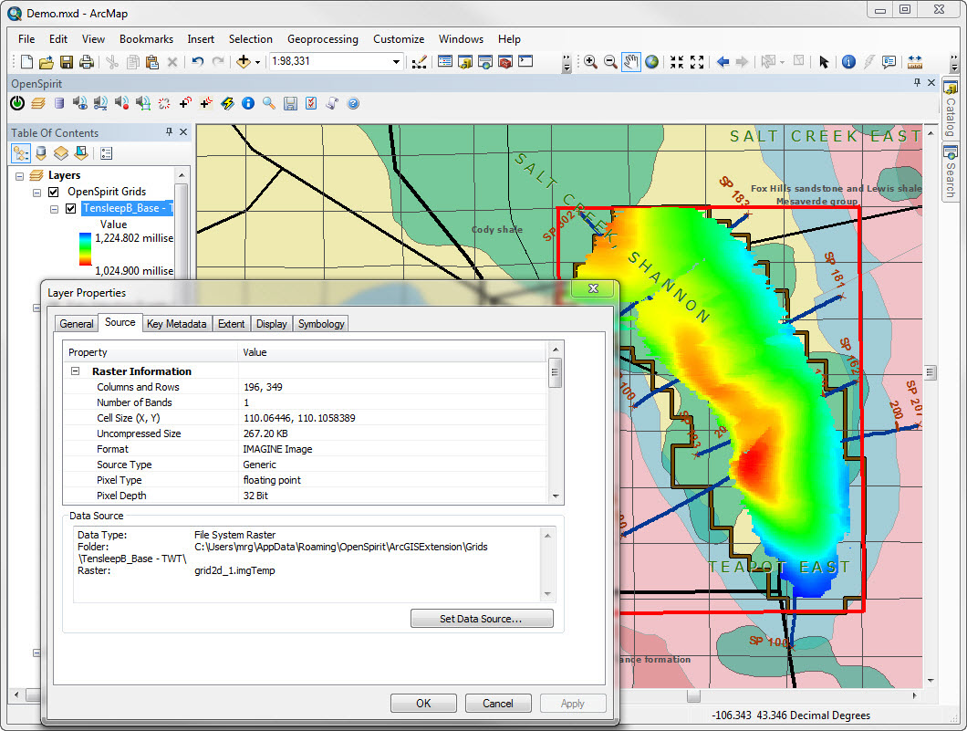 The raster feature will be written to disk as an IMAGINE image in a working directory specified in the OpenSpirit options dialog (default in the user's home directory):
