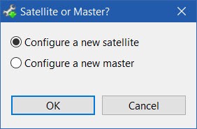 Click the Ok button to begin the configuration process. The Install Config Manager window appears with a satellite or master configuration form opened ready to create a configuration. See the Install Config Manager section of this guide for information about entering the satellite or master configuration information.