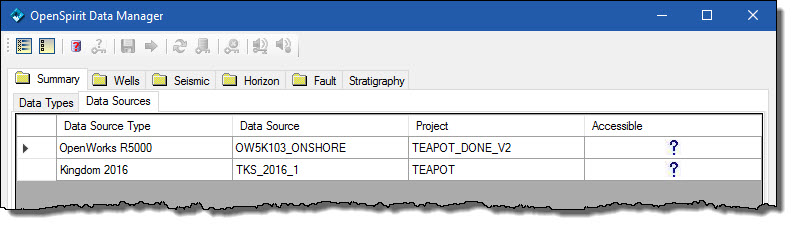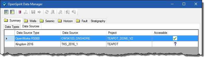 The "Accessible" column will initially show "?" until you verify the data source by selecting it and clicking on this icon: