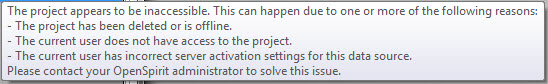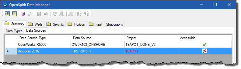 When this icon is clicked, the OpenSpirit Adapter will make a simple query to the referenced project to verify that it is still accessible.
