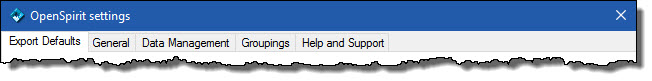 There are five tabs in this dialog that are described in more detail in the following sections. The Export Defaults tab is not shown unless the adapter is connected to OpenSpirit.