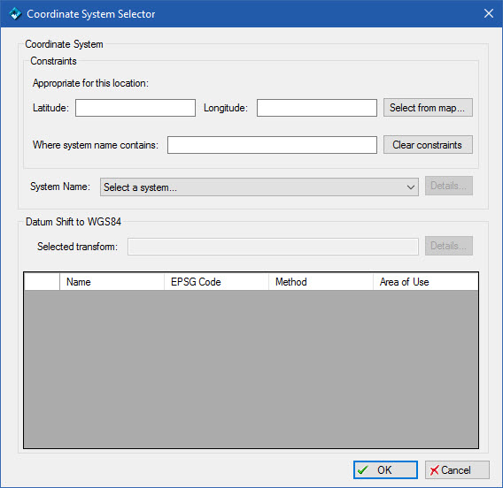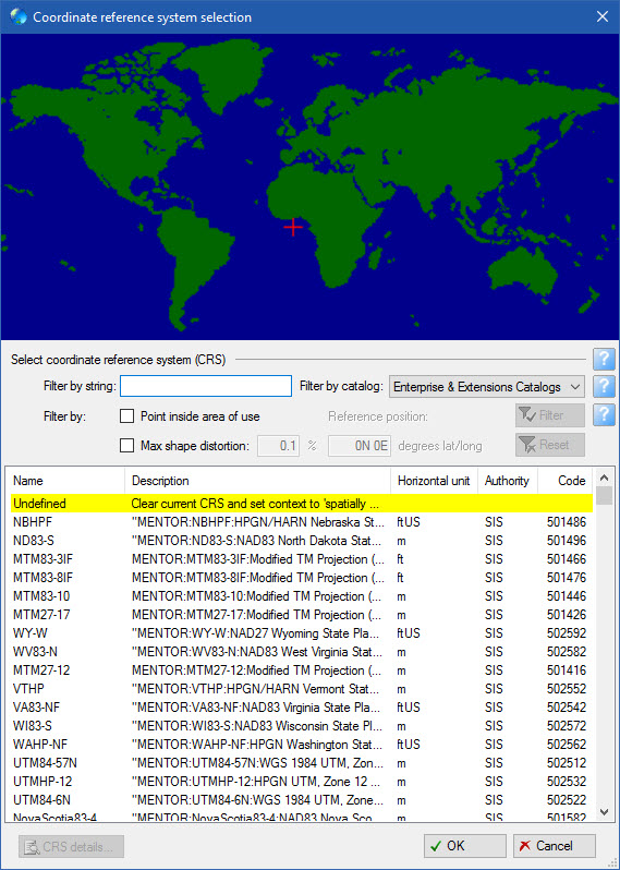 This option brings up the normal Petrel coordinate system selection dialog. Choose a CRS from this list.