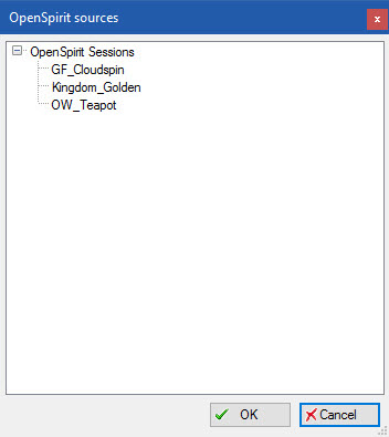 In this option you select an existing OpenSpirit session that has a preferred CRS already set on it. The OpenSpirit Session CRS is, in turn, obtained from a selected external project (e.g. OpenWorks, GeoFrame, Kingdom , etc...) that was chosen in the OpenSpirit session wizard.