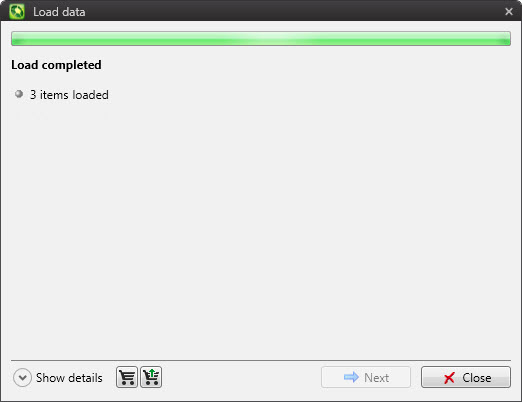 The data has only been queued for loading at this point. Click on the Close button to dismiss the Load completed message window.