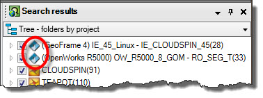 The projects that were indexed using OpenSpirit can be seen by grouping the search results by project. Projects that were indexed using OpenSpirit are shown with the OpenSpirit logo