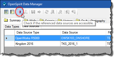 When this icon is clicked, the OpenSpirit Adapter will make a simple query to the referenced project to verify that it is still accessible.