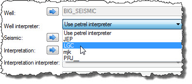 If an interpreter selection is optional, as with OpenWorks, a selection may be made for Well interpreter and/or Interpretation interpreter where appropriate in the dialog.