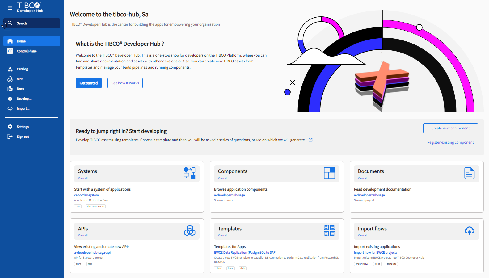 An import flow lets you take existing source code, help generate entities and import those into TIBCO Developer Hub. See Import Flows.