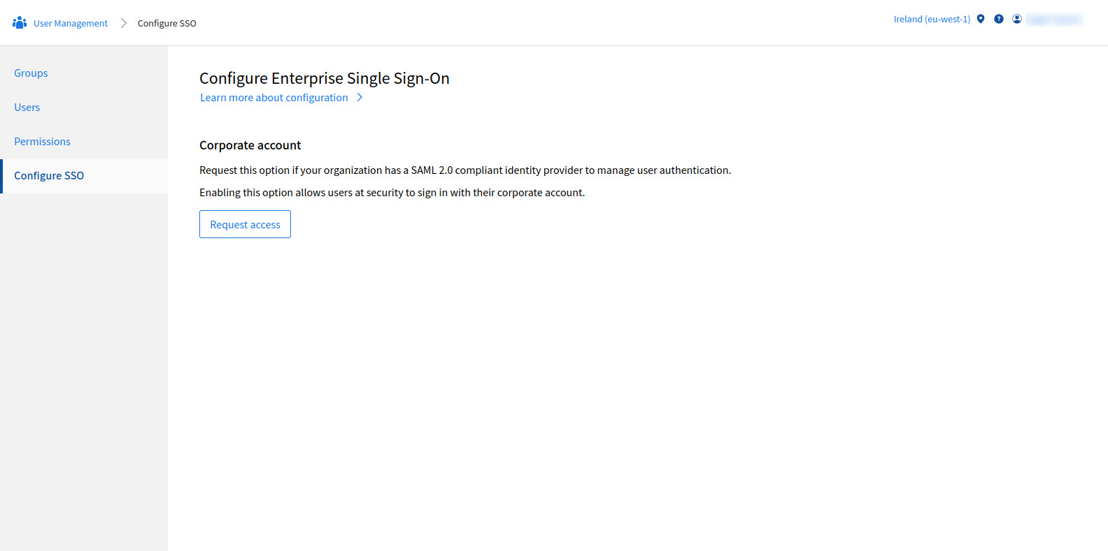 Go to User Management > Configure SSO and click Request access.
