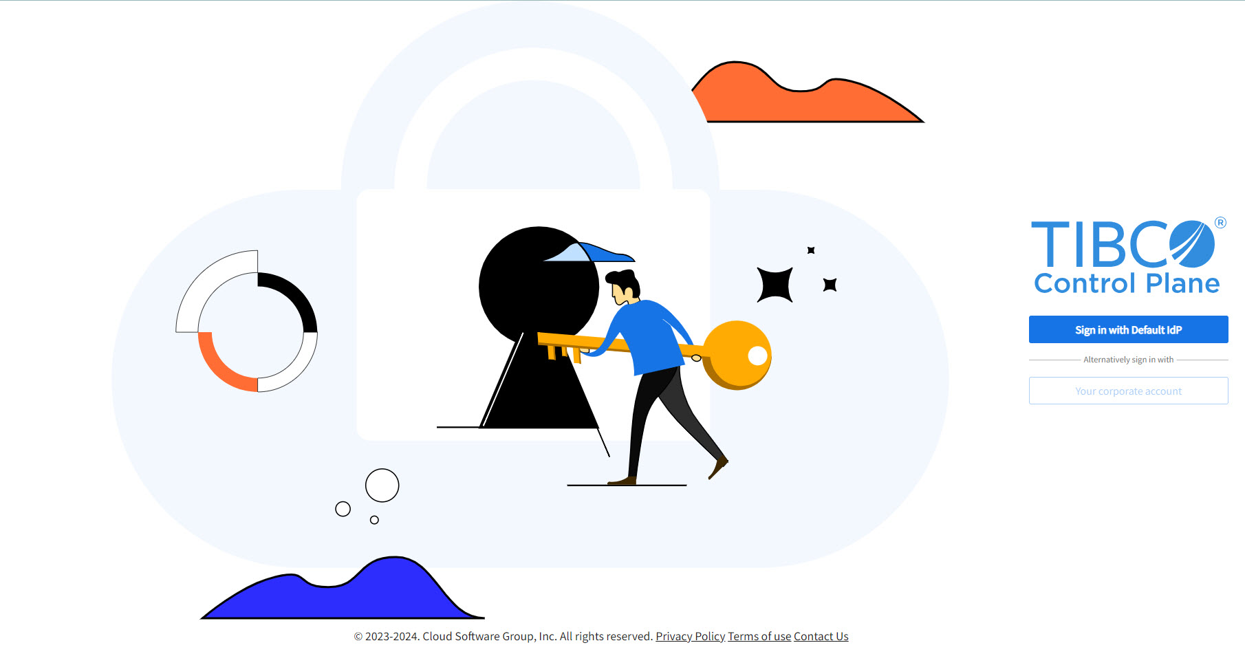 You can sign in to self-hosted TIBCO Control Plane by using default IdP or with your corporate account. For more information about Single Sign-On using corporate account, see Configure IdP.