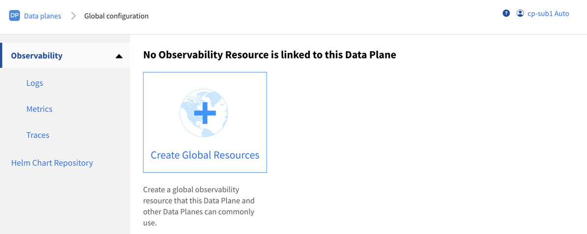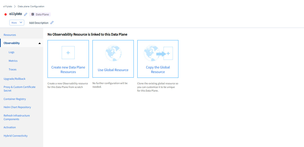 - To create a separate observability resource at the data plane level with the same global resource configuration, click Copy the Global Resource.