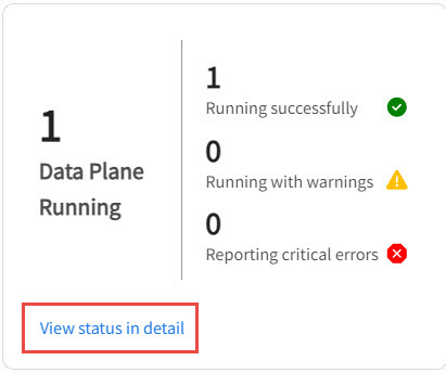 Data Plane status is success if all of its capabilities are in Success status, and all of its infrastructure components are in running state, and the tunnel for the data plane is in connected status. |