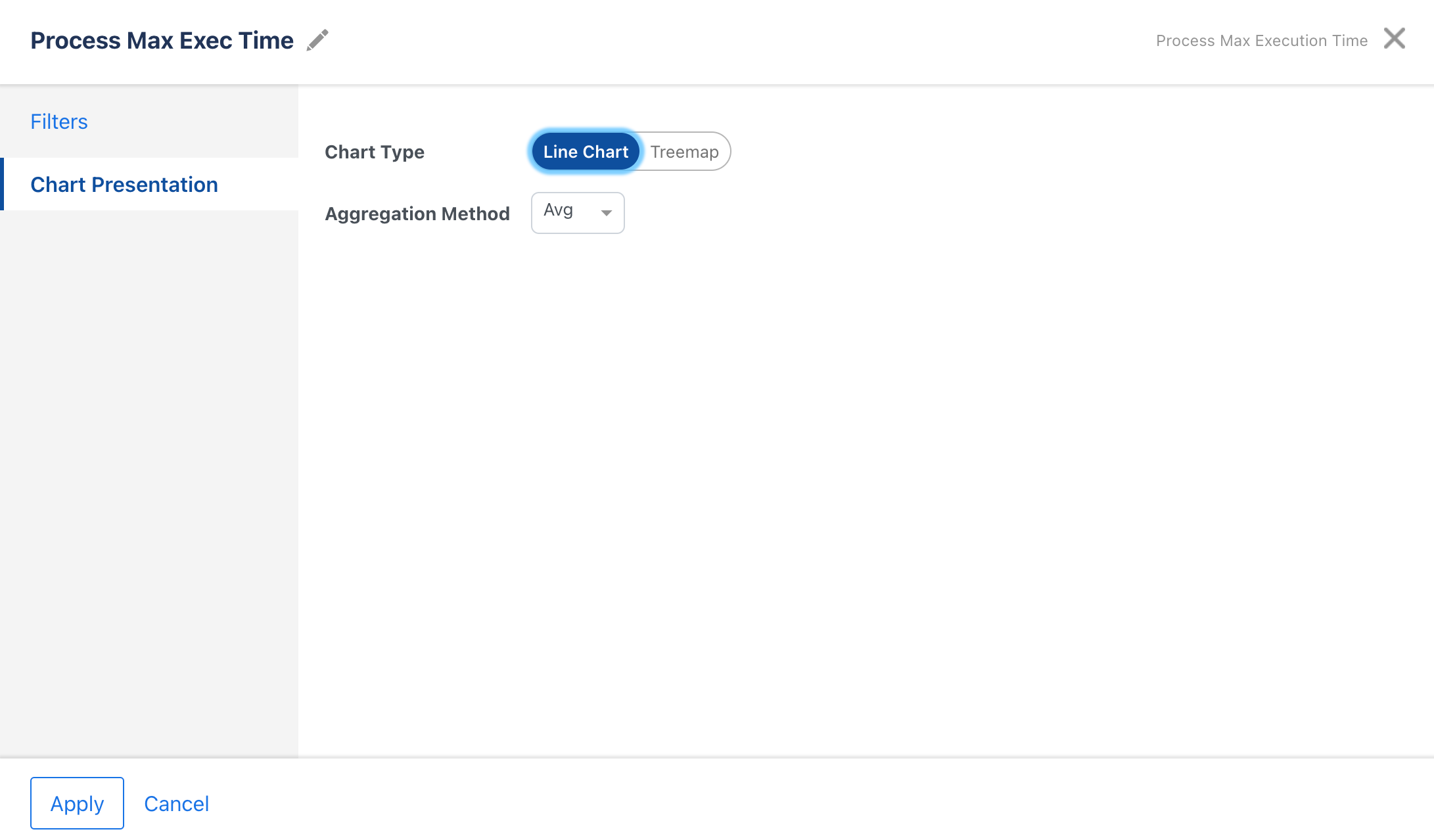 You can select the chart display type as Line chart or Treemap.