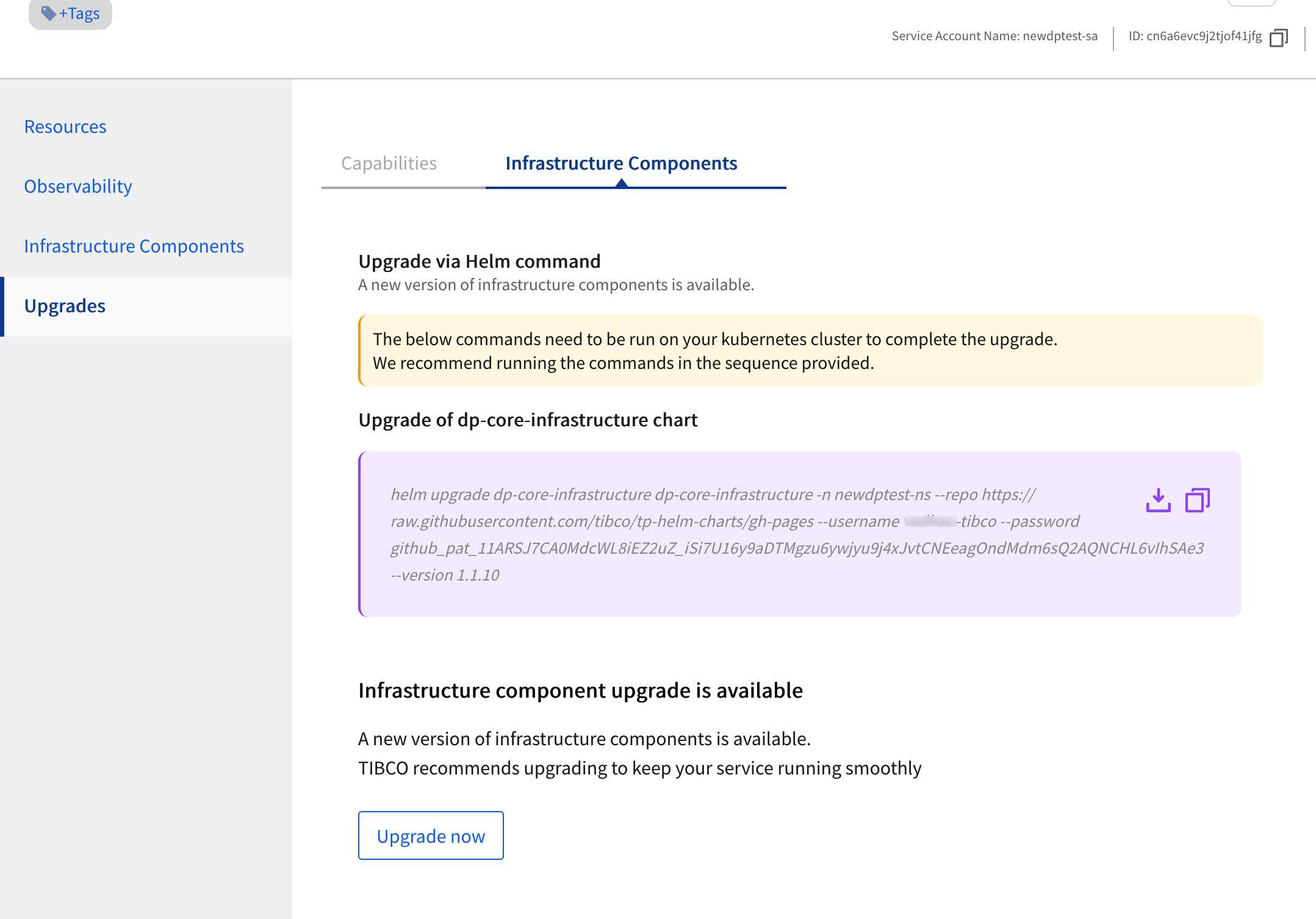 - Click Upgrade now. It takes some time to upgrade the infrastructure components.