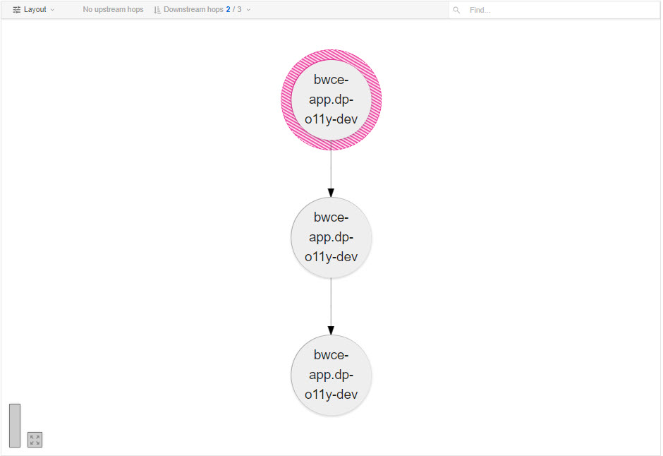 The Deep Dependency Graph displays transitive dependency between services. The deep dependency graph describes how the services in traces are connected.