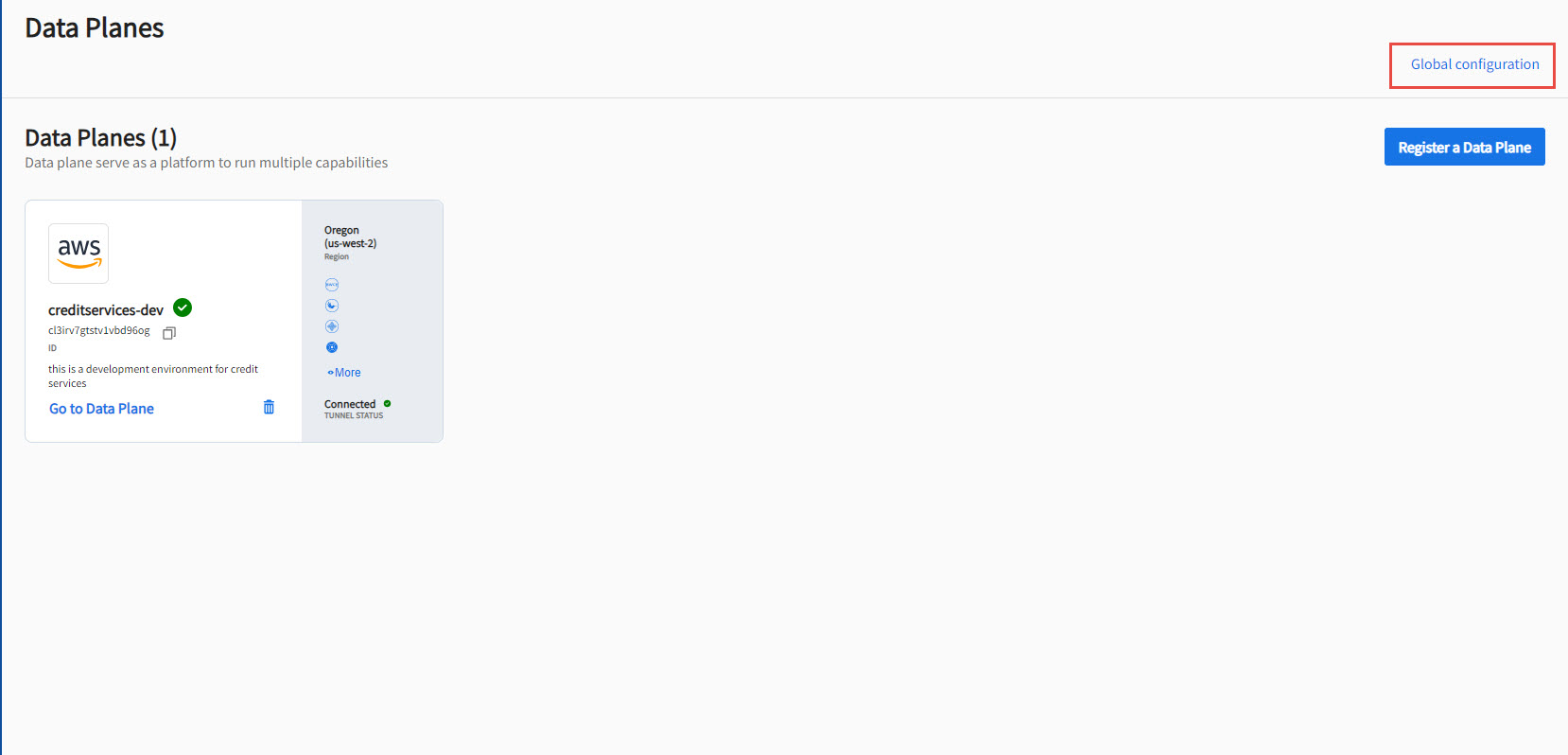 You can switch between Global resource and data plane level resource by clicking the Switch to global resource button next to the resource name. When you switch from data plane level resource to global level resource, data plane level resources are unlinked and deleted in the Control Plane and updated with global level resources.