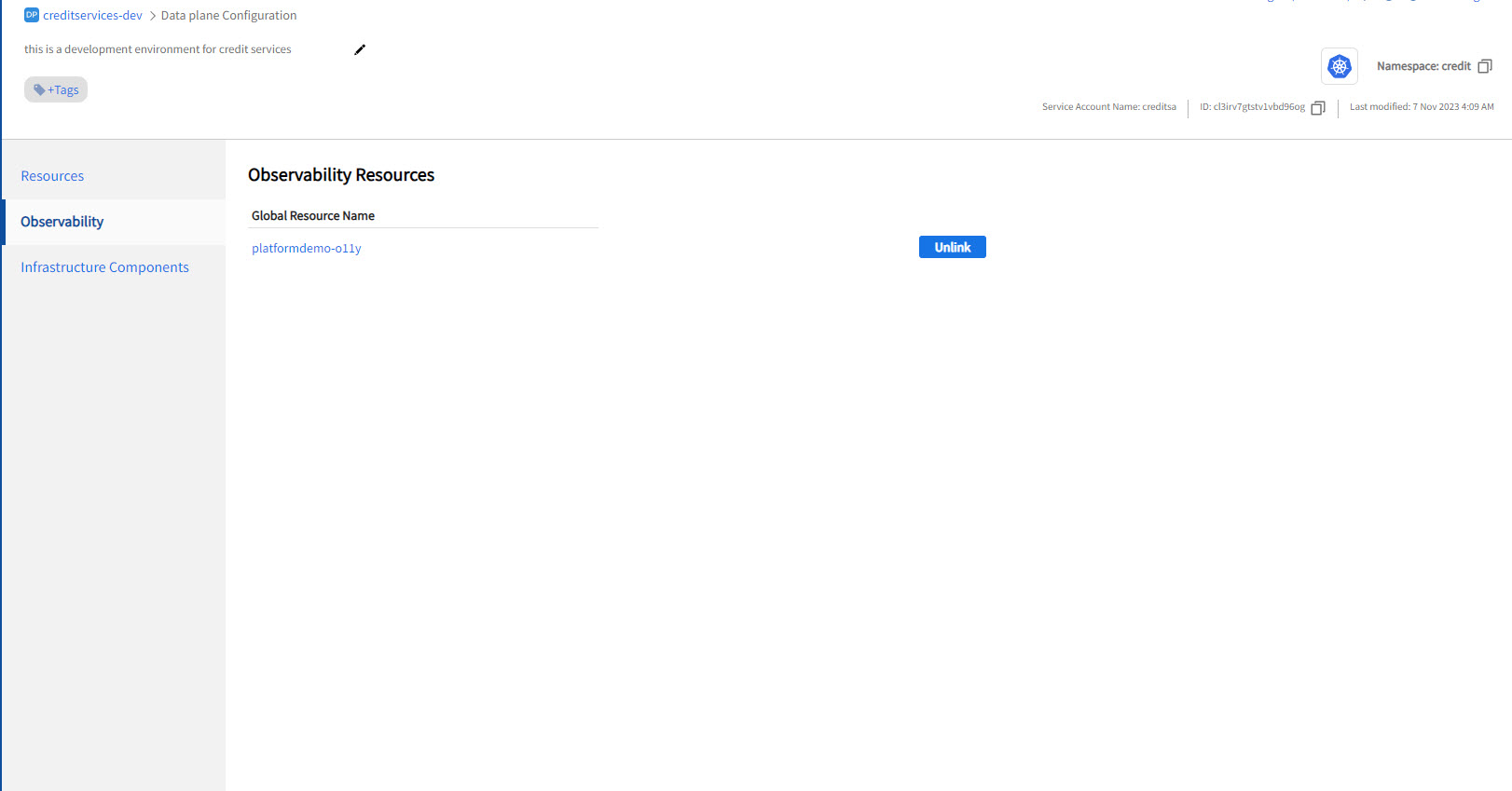 - To create a new observability resource at the data plane level, click Add new observability resource for this data plane.