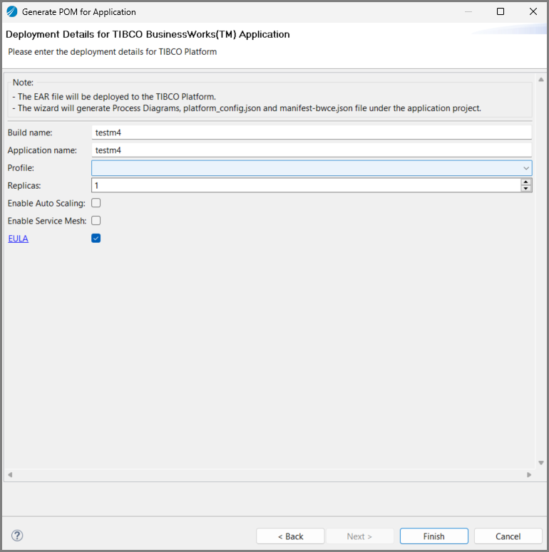 EULA: Select the EULA checkbox to deploy applications to the TIBCO Control Plane.