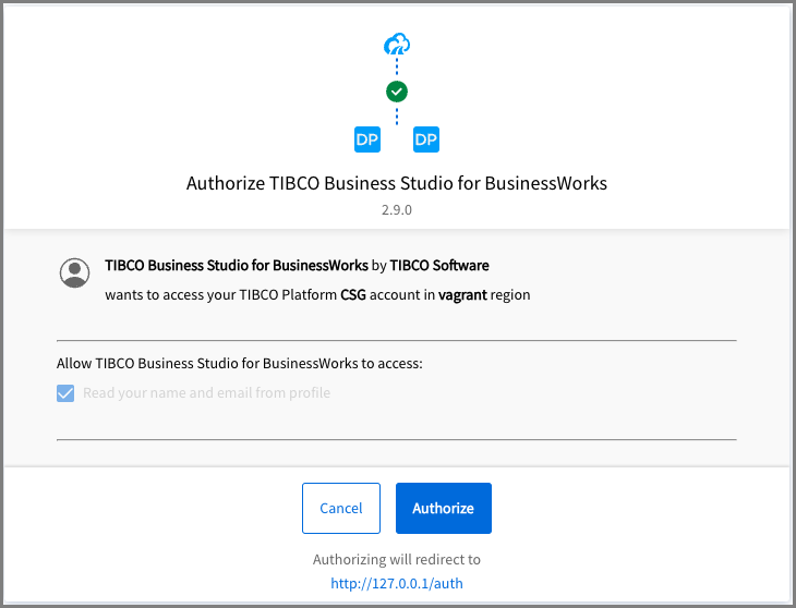 - In the Authorize TIBCO Business Studio for BusinessWorks window, select the data planes that you want to access and click the Authorize button.