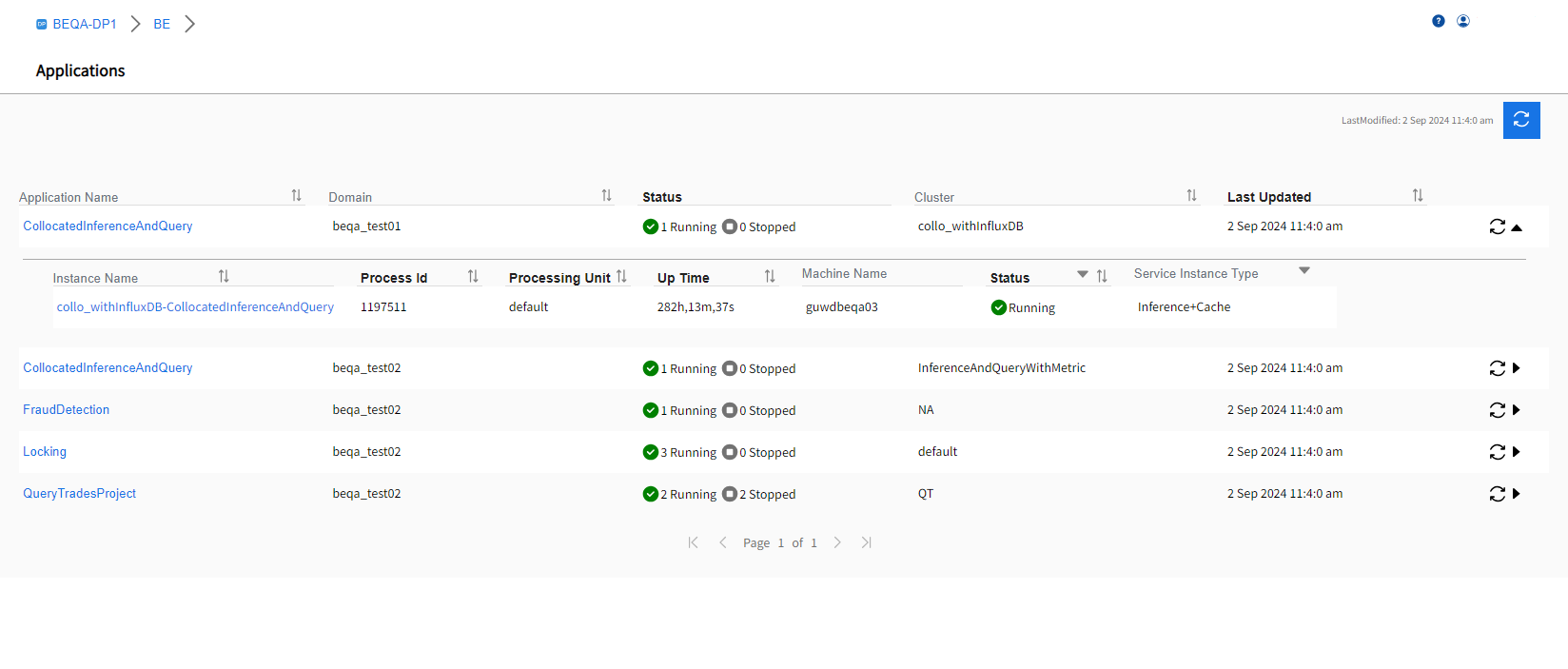 | Cluster | The name of the cluster, if it is clustered BE application. NA if it is an unclustered BE application. |