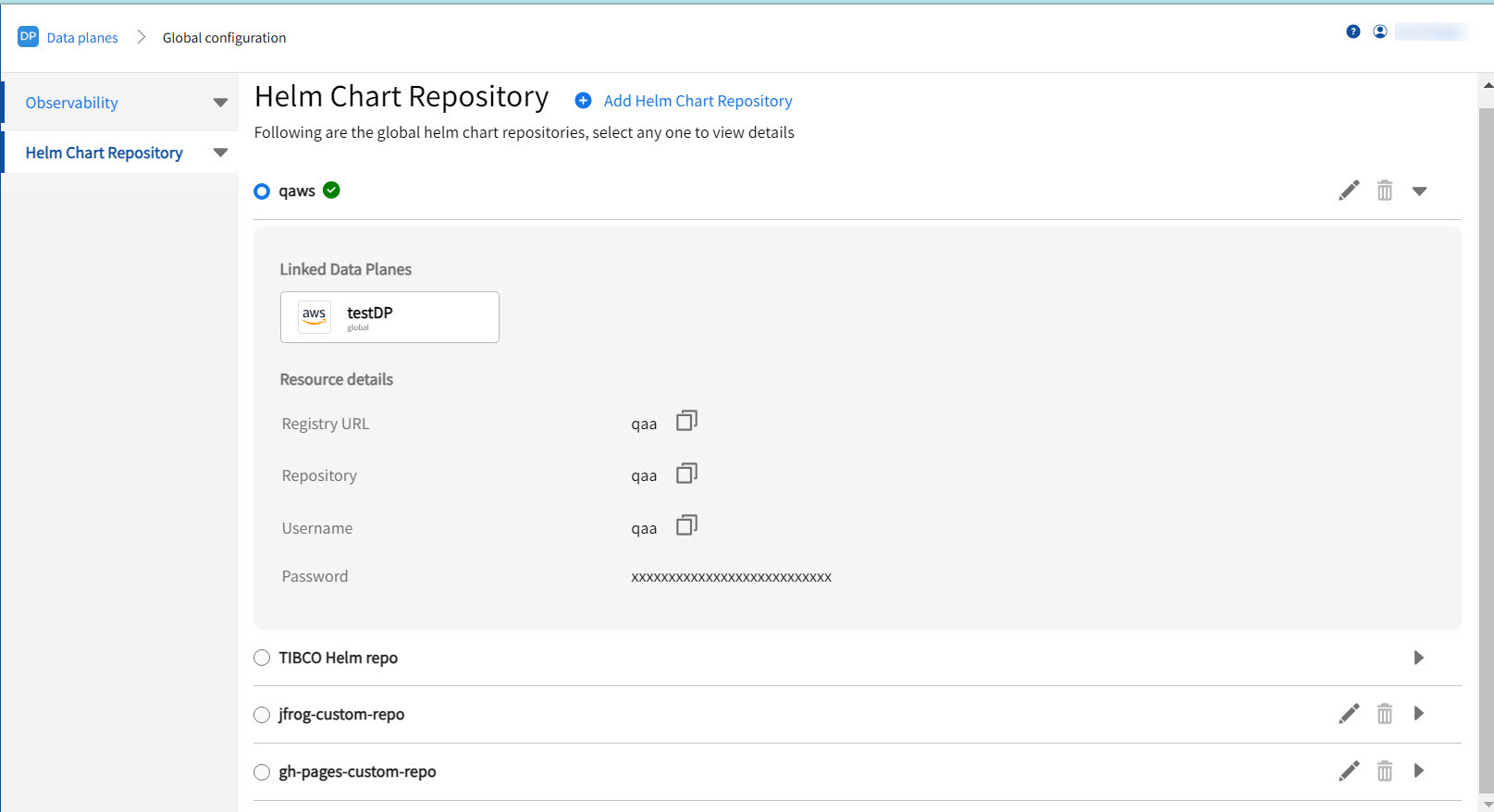 Click Data Plane Configuration and then navigate to the Helm Chart Repository page.