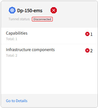 TIBCO Control Plane communicates to the data plane using tunnel. The tunnel is an infrastructure component, which gets deployed in your Kubernetes cluster. You can view the tunnel status on a data plane card on the Monitoring Status page. If the tunnel status is error, there might be an issue with connectivity between the data plane and TIBCO Control Plane.
