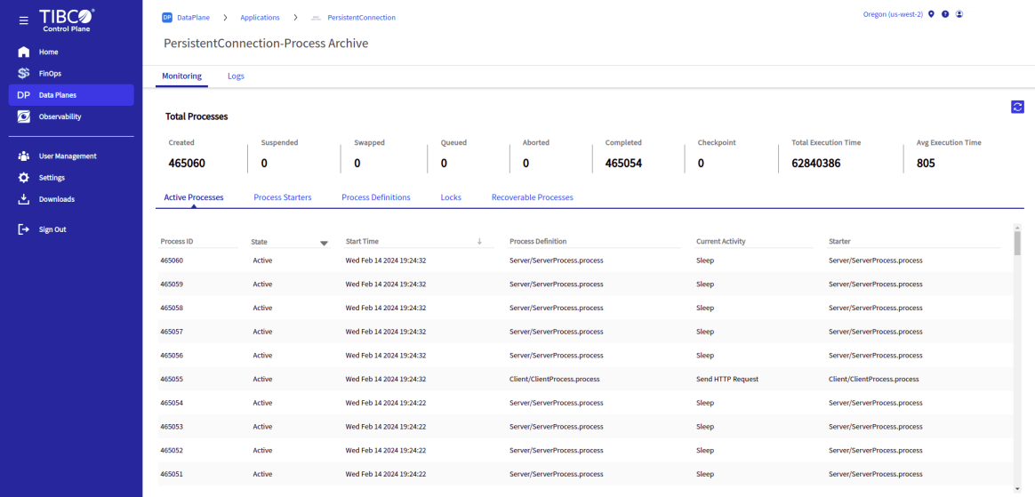 The active processes display the active process engines. As a rule, this includes process engines that are suspended or waiting.