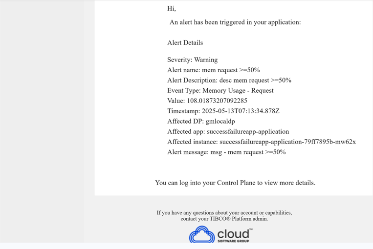 You can configure email notifications for alerts in TIBCO Control Plane.