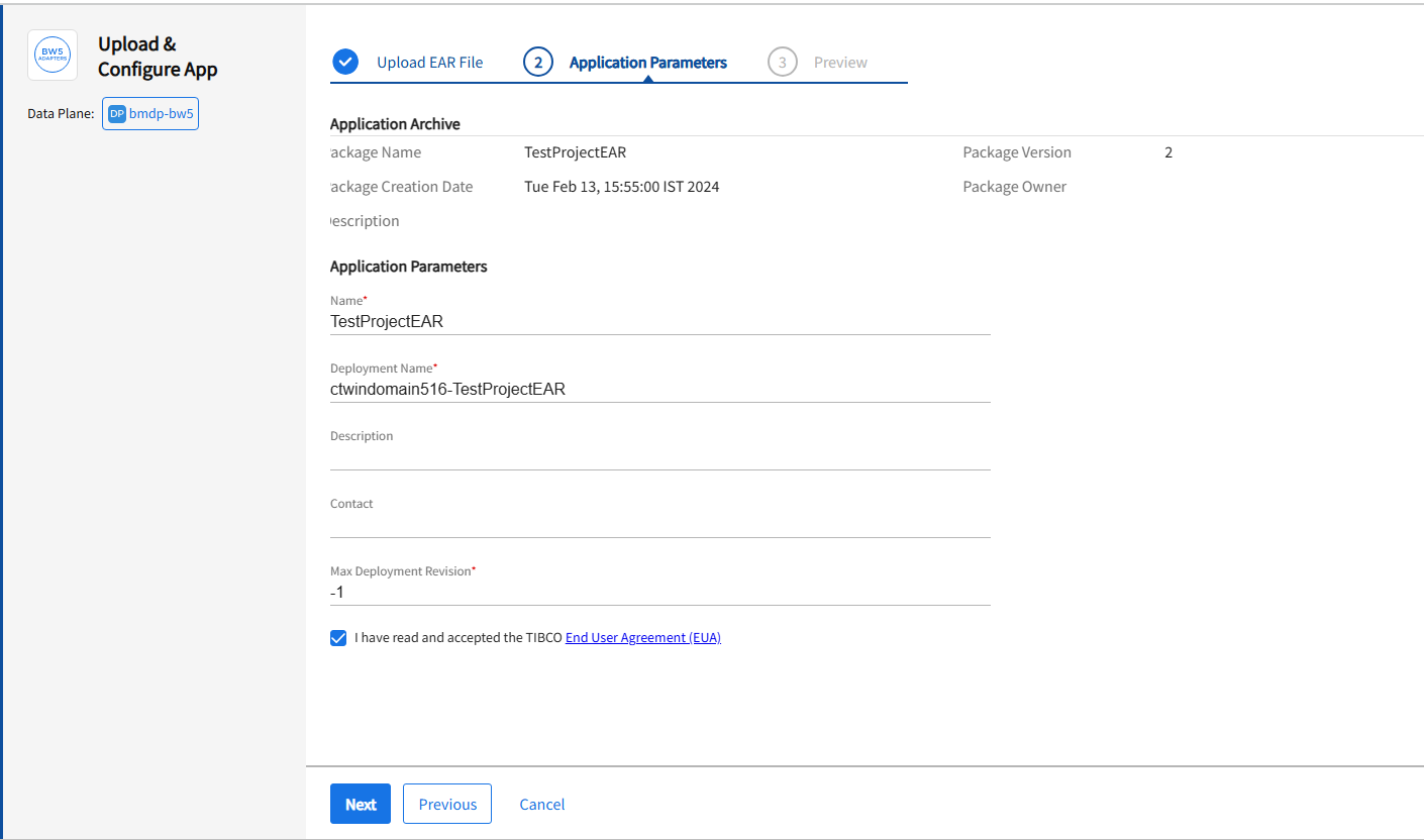 Name: Name that this application has in TIBCO Control Plane. Defaults to the name of the enterprise archive file, but can be changed.
