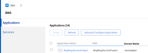 | Service | The Service column lists the services made available for this application. For example, if you included two TIBCO BusinessWorks process archives in your Enterprise Archive when you configured it in TIBCO Designer, each is displayed as a service in this column. |
