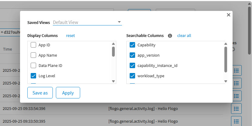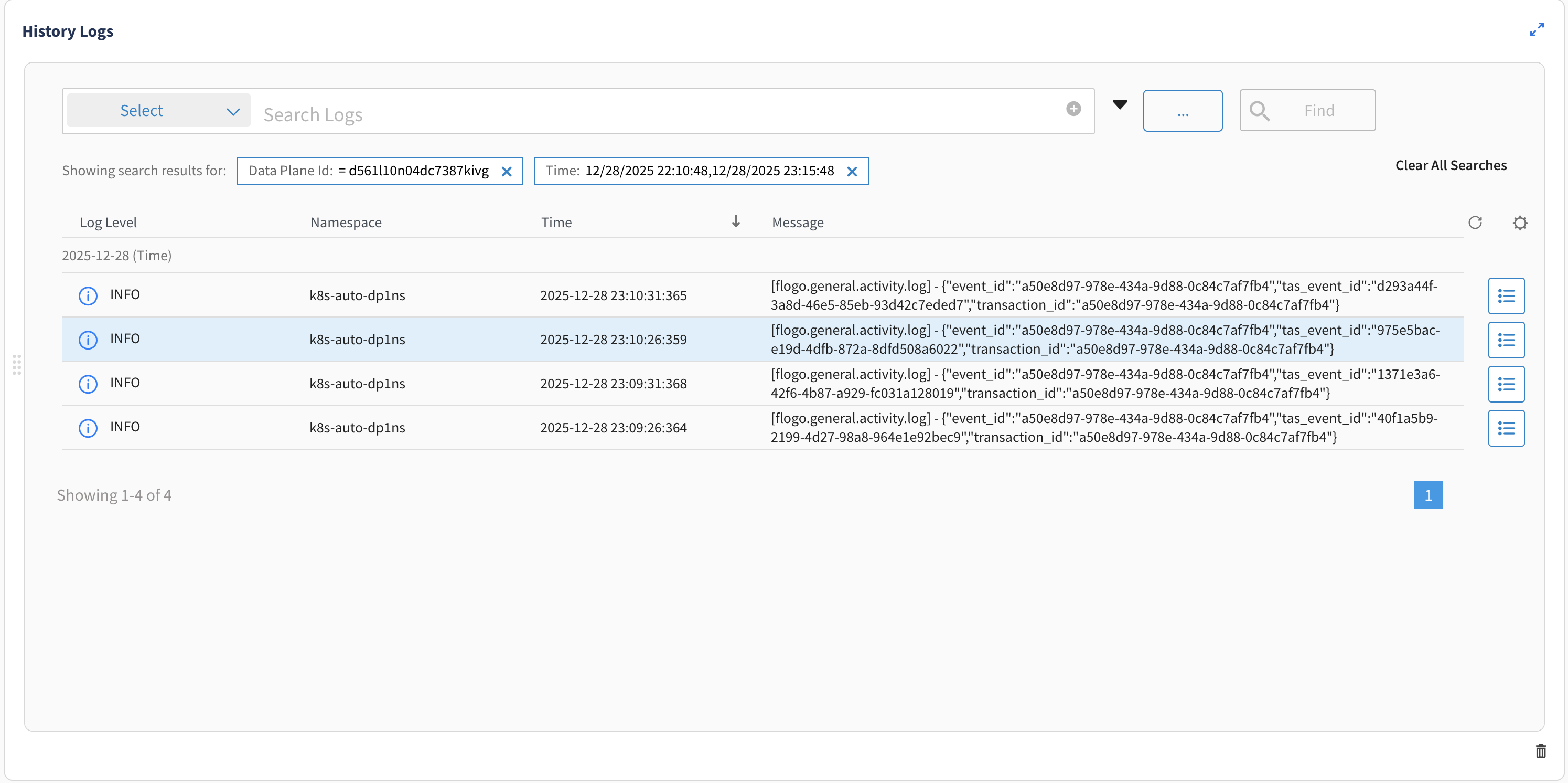 History logs card displays collected logs from various user applications of all capabilities at a single place. This card provides a single, convenient location to view all collected logs, eliminating the need to navigate through specific application instances.