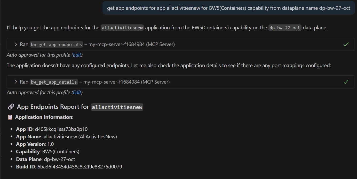Get app endpoints for app allactivitiesnew for BW5(Containers) capability from dataplane