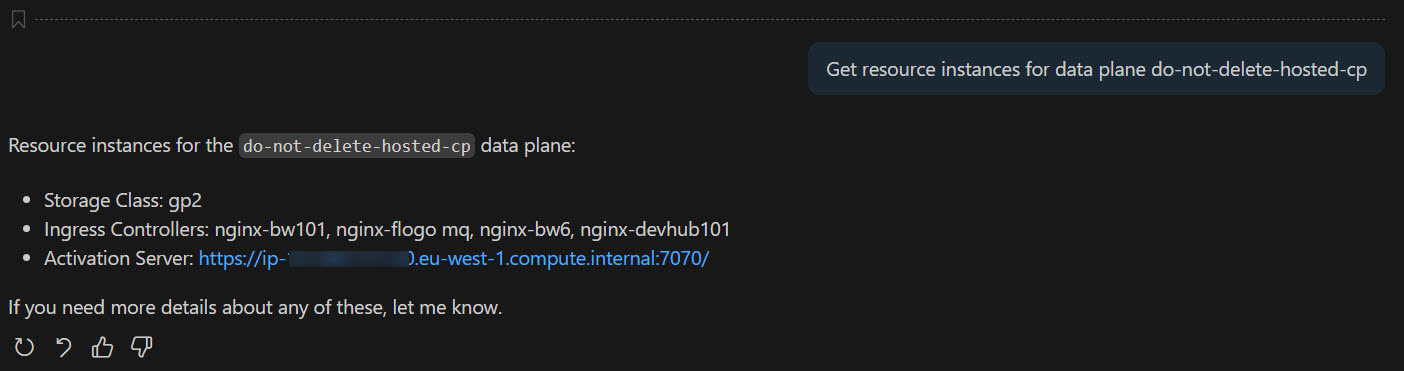 After the MCP server is configured, you can use natural language to interact with TIBCO Control Plane, data plane, and capabilities. Here are some example prompts: