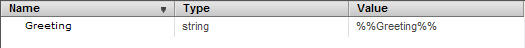 A composite property is specific to an application. Often the same property may be defined in more than one application. For business reasons or ease of use an Administrator may want to define the value only once and have it be used by more than one composite property. This is achieved by binding the composite property to a substitution variable, which can be defined at the enterprise, host, environment, node, application, and application fragment levels. The following figure shows a property named Greeting bound to a substitution variable named Greeting.