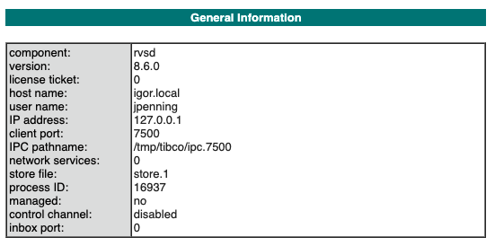 rvsd and rvsrd (like all Rendezvous components) display information about themselves on this page.