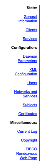 All browser administration interface pages display a navigation panel at the left side of the page. Use these links to display other pages.