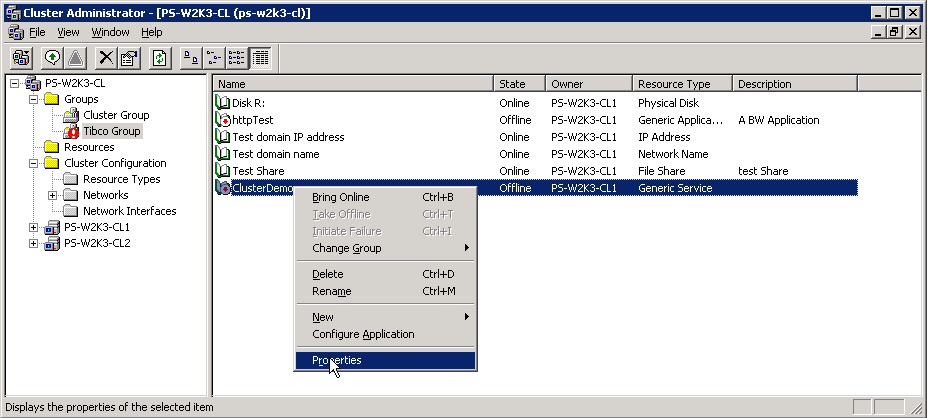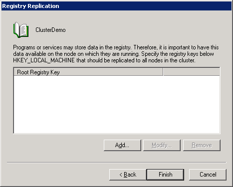 1. Figure 15 Cluster Administrator WindowFigure 16 New Resource DialogFigure 17 Select Source TypeFigure 18 Possible Owners DialogFigure 19 Dependencies DialogFigure 20 Generic Service ParametersFigure 21 Registry ReplicationFigure 22 Cluster Administrator WindowFigure 23 Advanced Tab