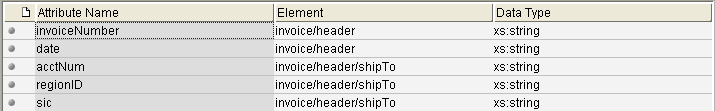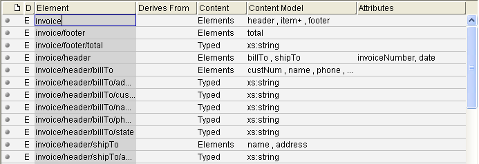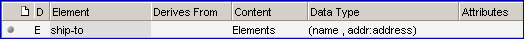 This column is labelled as either Element or Complex Type depending on the type of declaration indicated in the Declaration Type column for the selected row. A new element or complex type can be created by clicking on a blank row under the Element/Complex Type column, and then entering a name. To edit an element or complex type name, click on an existing name in the Element/Complex Type name column.