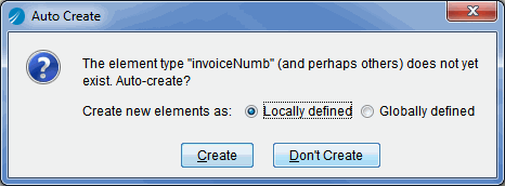 6. Figure 5 Auto Create DialogBy default, new elements are declared to have xs:string content, which means they can hold text, but not other elements.