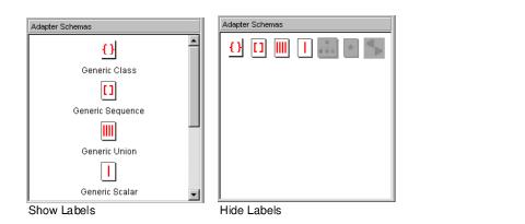 • Hide Labels/Show Labels—By default, each resource in each palette includes a label. If you select Hide Labels, the labels are removed.