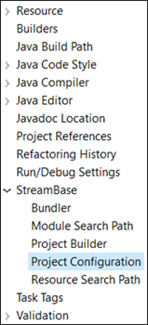 To use the Project Configuration panel, open the Project Properties dialog for the Studio project of interest as described in StreamBase Project Properties. Select Project Configuration from the contents column on the left.