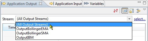 When you first start an application running in Studio, the Application Output view is set for (All Output Streams) to show the output of all available streams in the running application, as described in the previous section.