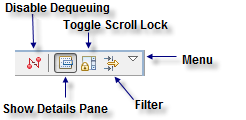 The buttons on the Application Output view's toolbar are used as shown in the following illustration.