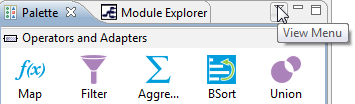 Only the EventFlow Editor has an associated Palette view. When no EventFlow Editor is open, or when a StreamSQL or text editor is active, the Palette view is not available.
