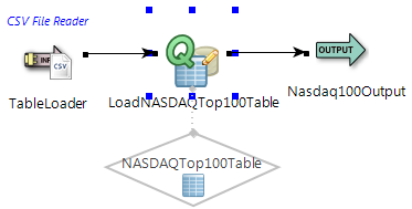 Compare the same module in StreamBase Studio 6.6, where the square blue dots show that the Query operator is selected: