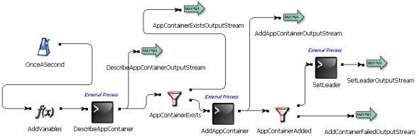 | AppContainerAdded | Filter operator | Controls the next step of the process, based on whether the sbadmin addContainer command failed or succeeded. If it succeeds, its server becomes the leader. |