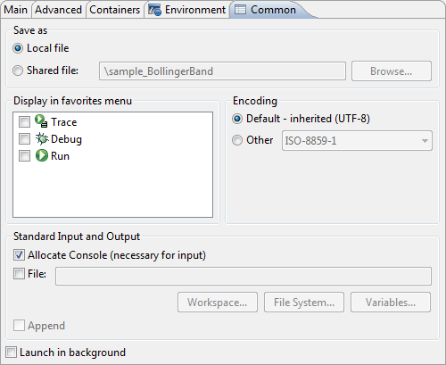 The settings in the Common tab are common to all Eclipse launch configurations. Use Eclipse Help to learn how more about these options.